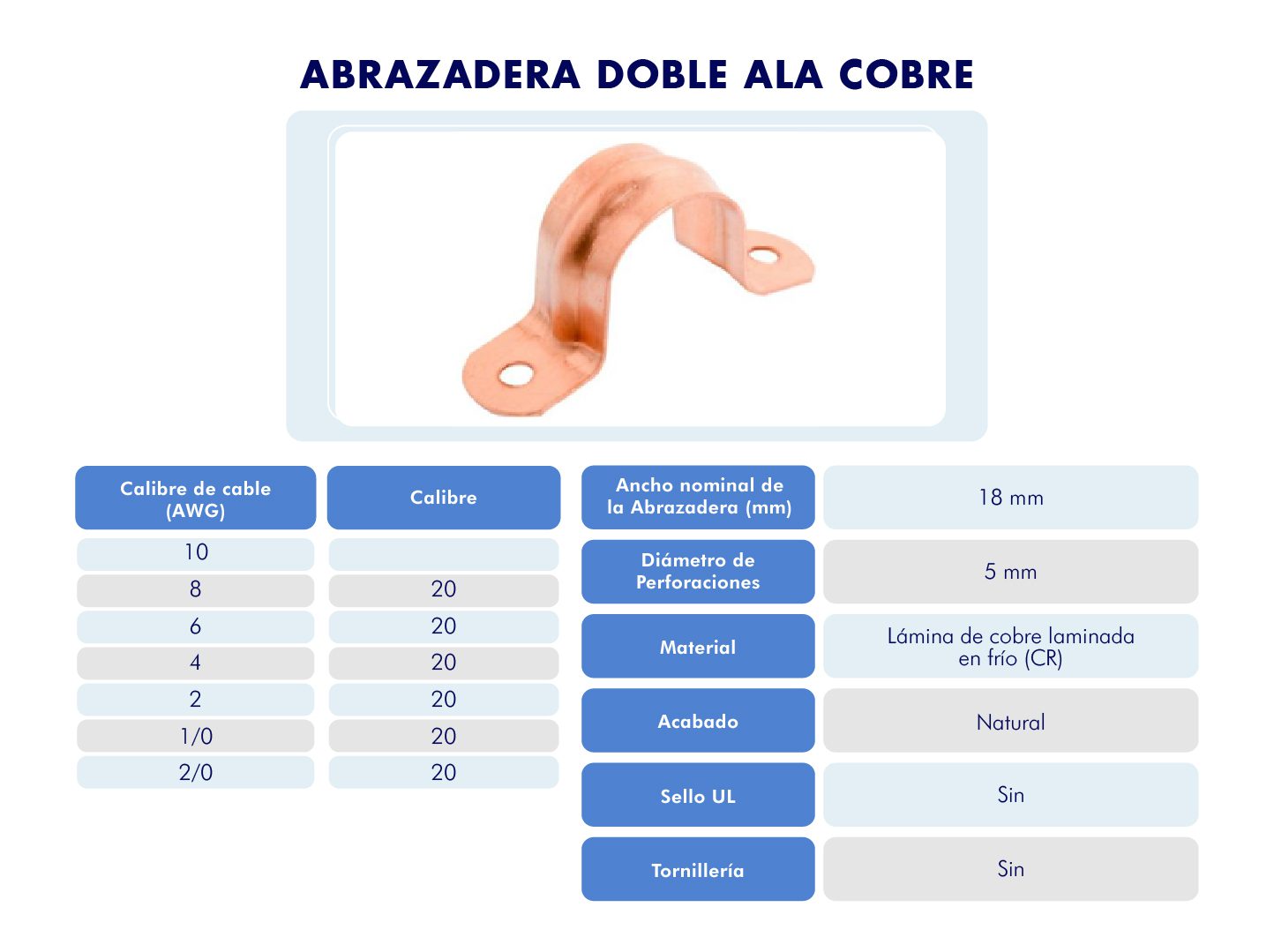 Abrazadera Doble Ala Cobre
