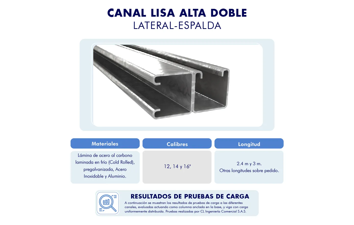 El canal estructural o Perfil metálico con geometría en «C» con pestañas hacia su interior, que se emplea para soportar y/o fijar sistemas portacables, tuberías, entre otros. La canal puede ser «Lisa» (sin perforaciones) o «Troquelada» (con perforaciones tipo slot). Dimensiones de su sección transversal: 1 5/8″ x 1 5/8″ (Alta) ó 1 5/8″ x 7/8″ (Baja). La canal es compatible con cualquier sistema portacables.