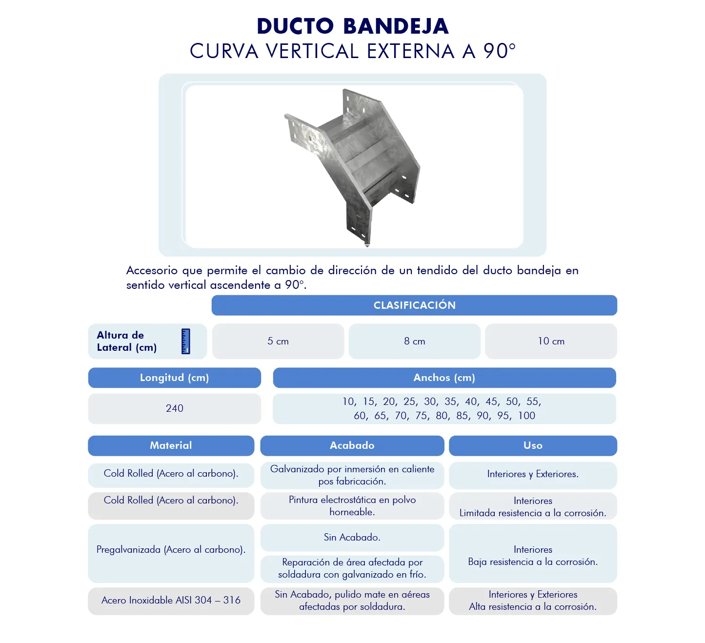 Curva Vertical Externa a 90° para Ducto Bandeja