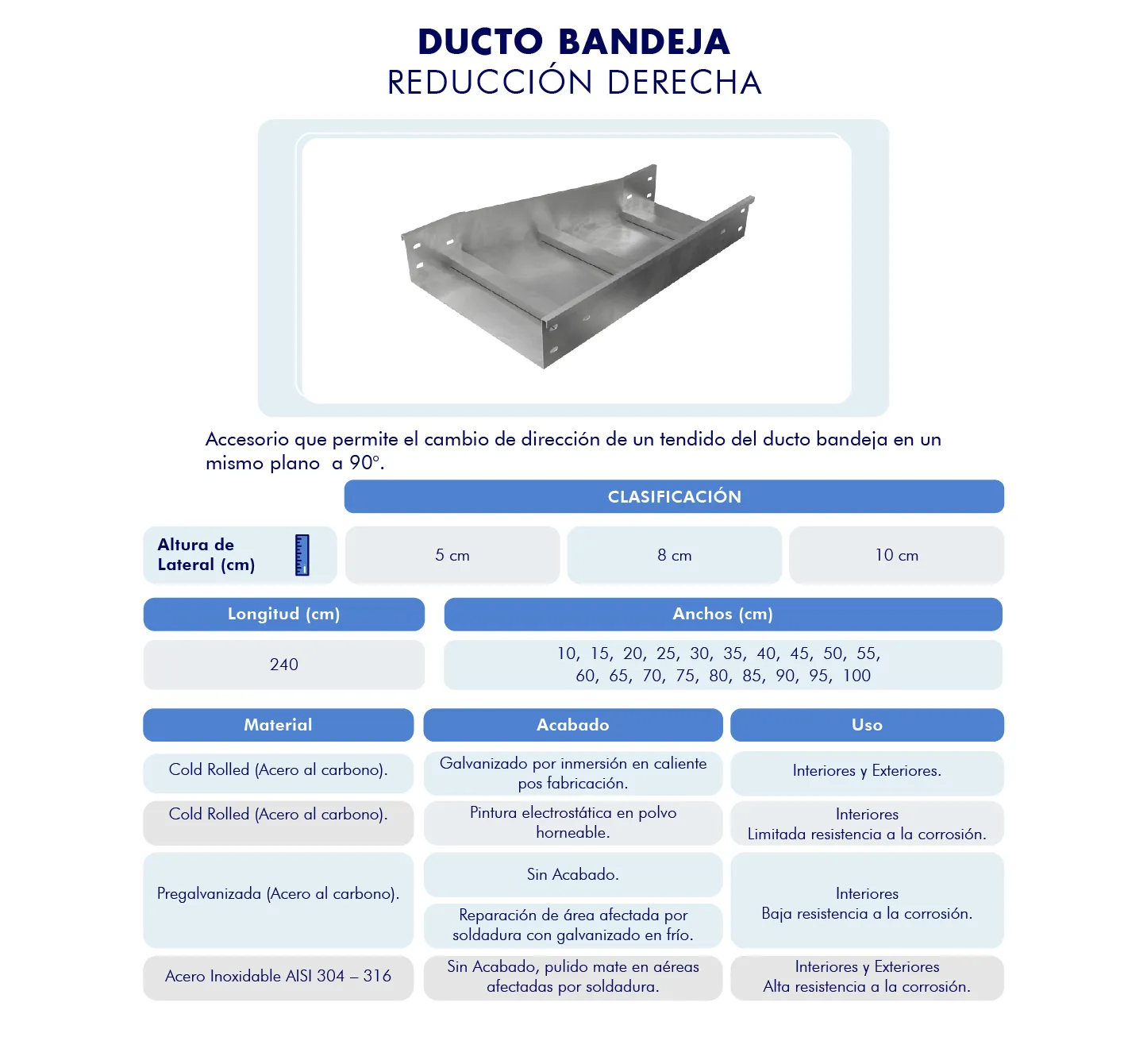 Reducción Derecha para Ducto Bandeja